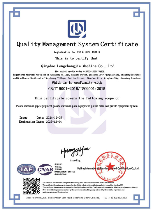 Компанія Ltd. Cingdao Changjie Machinery Co. була заснована 6 листопада 2001 року та Змінив свою назву на Qingdao Longchangjie Machinery Co., Ltd. 2013 рік. Компанія розташована у всесвітньо відомому порту та прибережному відкритому місті - Qingdao, - це сучасне підприємство впластикова технікаПромисловості встановіть нові продукти, дизайн, виробництво та продаж в одному. Транспорт використовує повну перевагу тривимірного моря, суші та повітря. Люди Чанджі продовжують вивчати професійну технологію внутрішніх справ та іноземні колеги, прихильні до досліджень, розробки, дизайну та виробництвоЕкструдерне обладнання, так що наша технологія процесу стискається на просунутому рівні вдома та за кордоном.